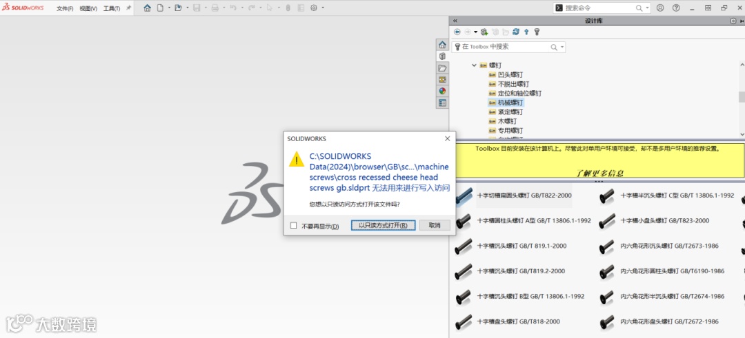 SOLIDWORKS隐藏的小工具允许用户批量修改Toolbox属性。