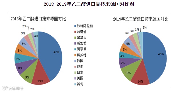 2019年,我国乙二醇进口量995万吨,排在前5位的是沙特、中国台湾、