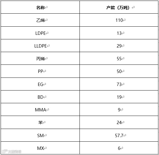 目前,乐天化学的装置产能如下: