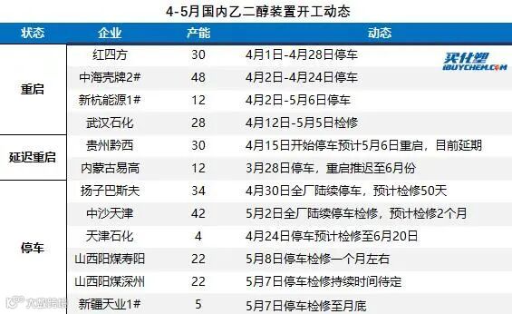 5月乙二醇供应量减少