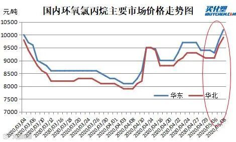 节后第一周,国内环氧氯丙烷市场价格呈拉涨态势。截止至5月8日,华东现货市场主流价格在10200元/吨,较节前一周涨800元/吨;山东现货市场主流价格在9900元/吨,较节前一周涨700元/吨。
