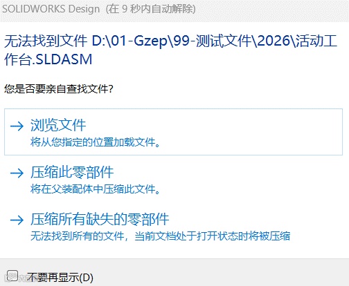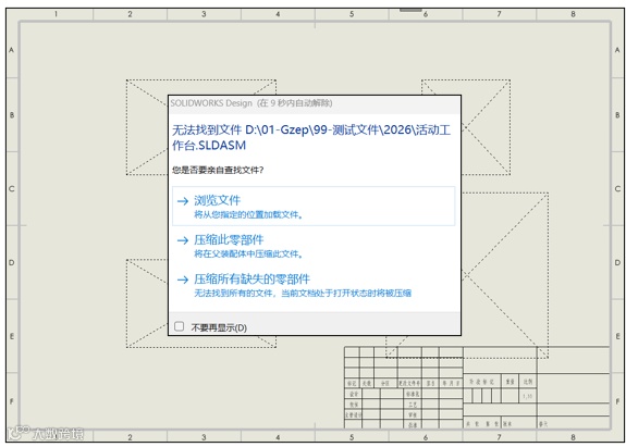 当打开SOLIDWORKS工程图时,如果出现“无法找到文件”的弹窗,这是最简单直接的恢复方式
