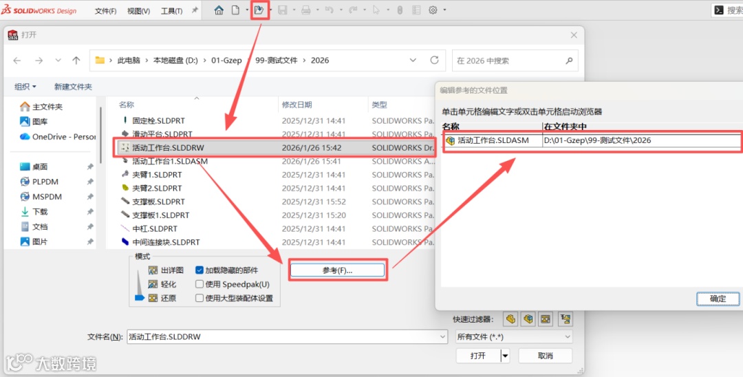 注意:这种方法让你完全手动控制工程图与模型的关联,能够精准解决复杂的文件丢失问题。