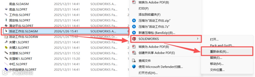 l 使用SOLIDWORKS自带重命名工具:重命名模型时使用SOLIDWORKS自带的重命名功能,而不是在Windows资源管理器中直接修改