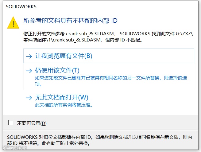 SOLIDWORKS内部ID不符可能由多种原因导致,包括但不限于以下几种情况: