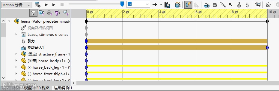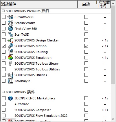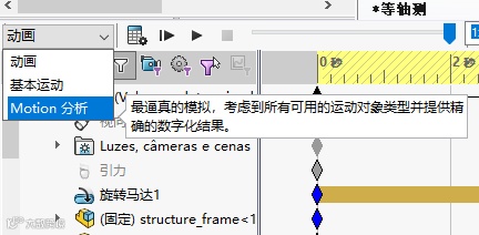 SOLIDWORKS Motion是独立模块,需要在插件中启用。启用后,在运动算例中会增加SOLIDWORKS Motion算例类型。