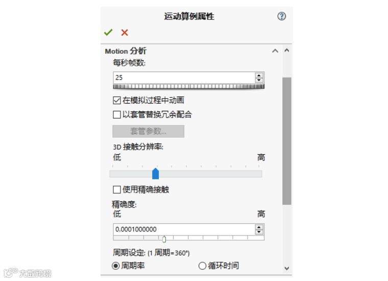 根据需要设定运动算例属性,如下图: