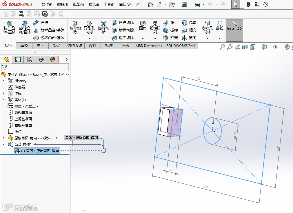 1、第一步,新建一个草图,生成实体,此实体中的草图作为一个原始草图,如图: