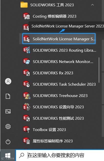在授权服务器电脑左下角开始/SOLIDWORKS工具202X/SolidNetWork License Manager Server 202X,如图7所示: