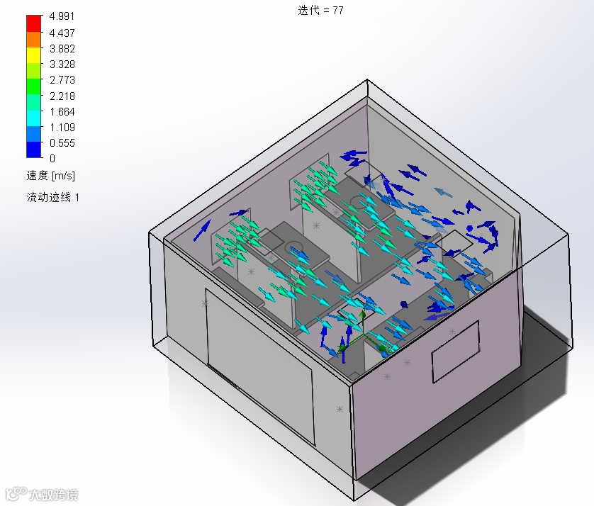 分析室内空气的流动情况,提供空气速度的流动轨迹视频、分析过程说明。优秀作品即有机会获得SOLIDWORKS专属连接HUB(数量上不封顶)
