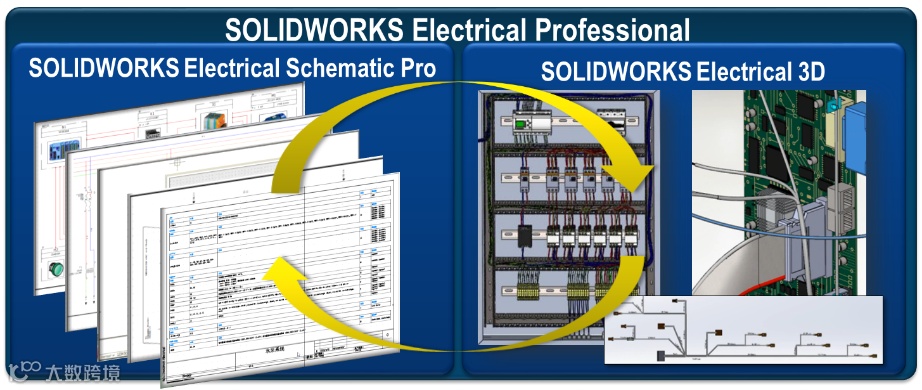 SOLIDWORKS Electrical机电一体化设计解决方案由SOLIDWORKS Electrical Schematic和SOLIDWORKS Electrical 3D组成,两者共同组成SOLIDWORKS Electrical Professional。
