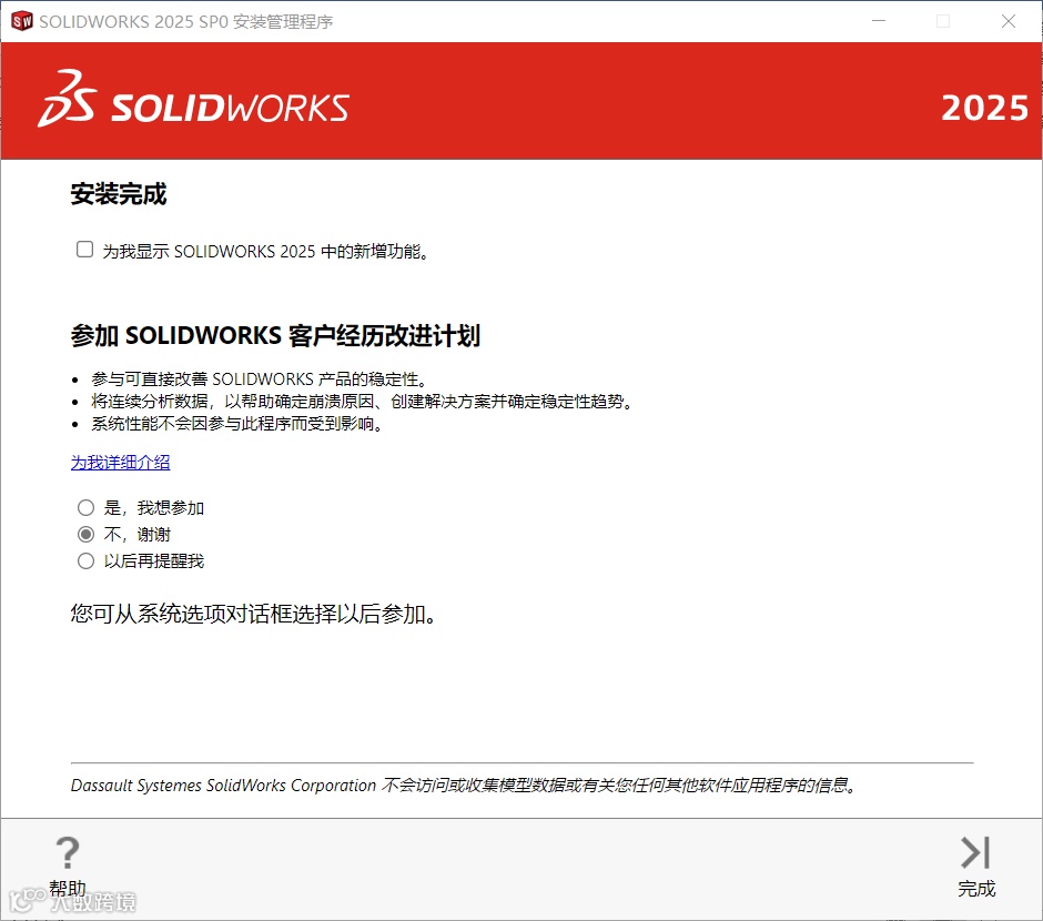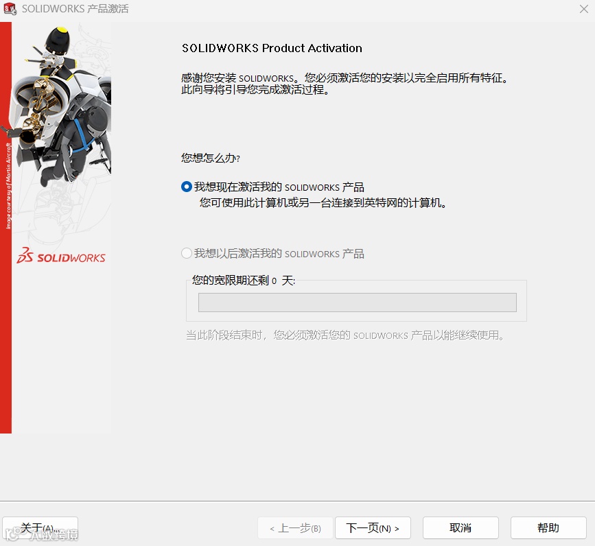 9、若在进行第3步时输入的是单机版本的SOLIDWORKS序列号,则在安装完成后打开SOLIDWORKS软件时会弹出“产品激活”的界面,在此界面中激活单机版本SOLIDWORKS序列号。若在进行第3步时输入的是网络版的SOLIDWORKS序列号则无需进行此步骤。