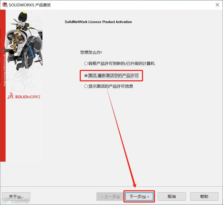 2、选择“激活/重新激活您的产品许可”,点击【下一页】;