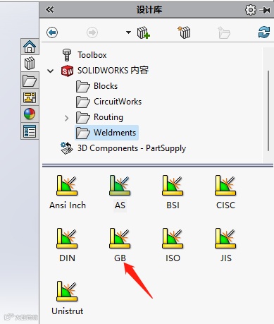 如此就可以使用自定义的焊件结构件了。需要注意:存放的文件夹有嵌套关系,一定放置到正确位置。
