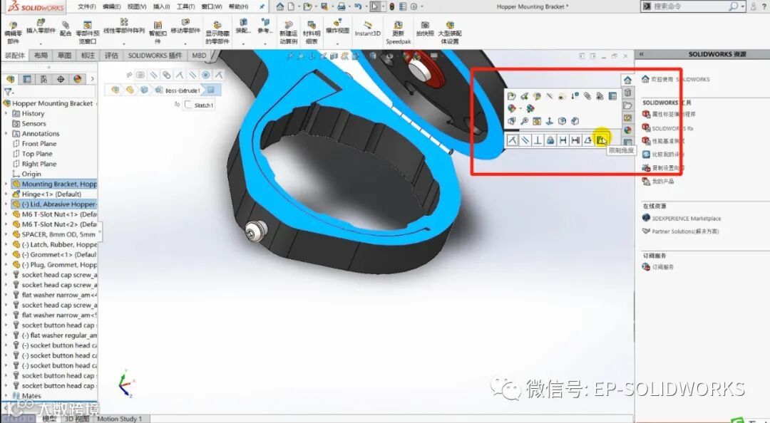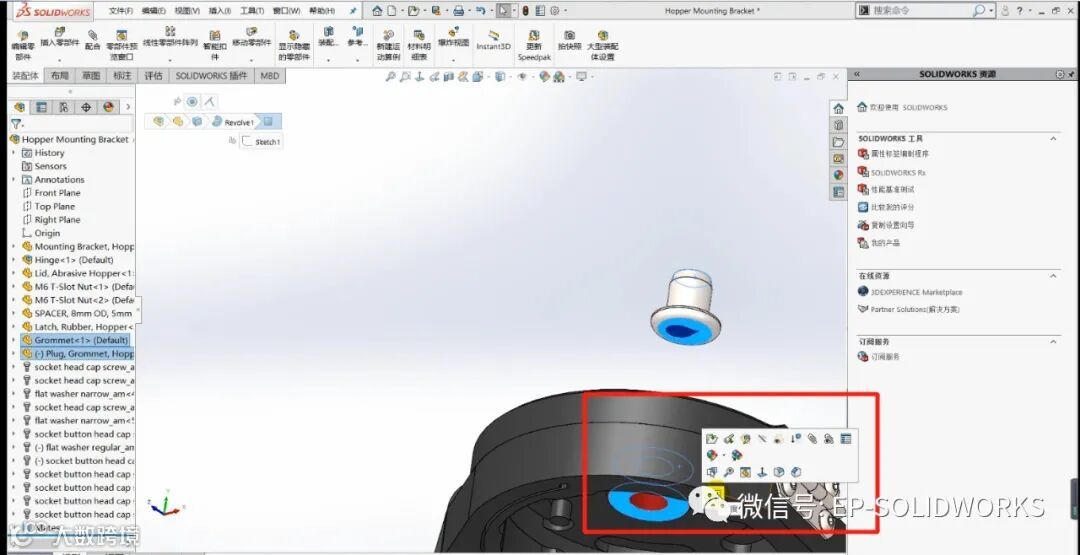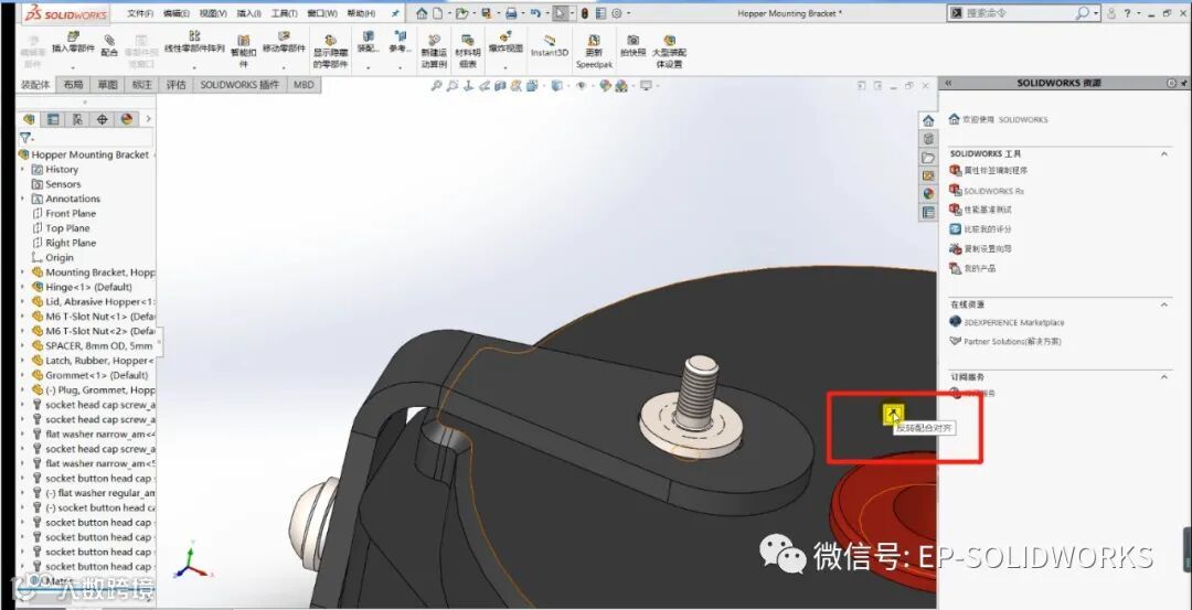 2014年SOLIDWORKS引入的快速配合工具栏,提供了一种直接从图形区域快速装配零部件的方法。SOLIDWORKS 2020通过添加其他常用工具扩展了这一高效的工具。让我们看看。当垫圈与槽口配合时,“快速配合”工具栏现在包括槽配合,并提供选择其约束的选项。对于这种情况,我们将把它放在插槽的中心。螺钉需要与垫圈配合,我们长期以来一直能够从“快速配合”工具栏使用中心配合来完成此操作,但是在创建配合后,如果不编辑配合,就无法反转配合对齐。现在在SOLIDWORKS 2020中,会弹出一个“反转配合对齐”,允许您在创建时反转配合。
