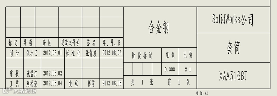第二类为工程图自定义属性,一般指人员名称、时间等,这些属性作为自定义属性保存在工程图当中。(查看工程图属性)