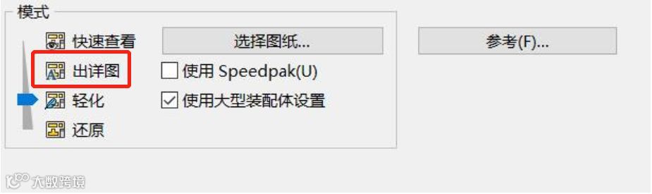 SOLIDWORKS 2020针对此项需求进行了重大升级!工程图的可选形式多出了一种「出详图」模式,打开工程图几乎和快速查看差不多,但是可以完成非常多的工程图操作。