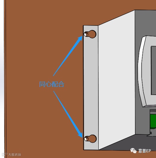 4、切换到装配体状态,添加板孔与零件ABB ACS550-01-06A9-4孔的同心约束,。如图1-4所示。
