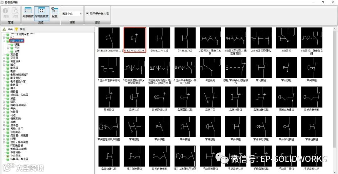 在图纸绘制过程中,正确使用符号选择器,可以提高设计效率。以插入常闭按钮为例,下面介绍两种方法。