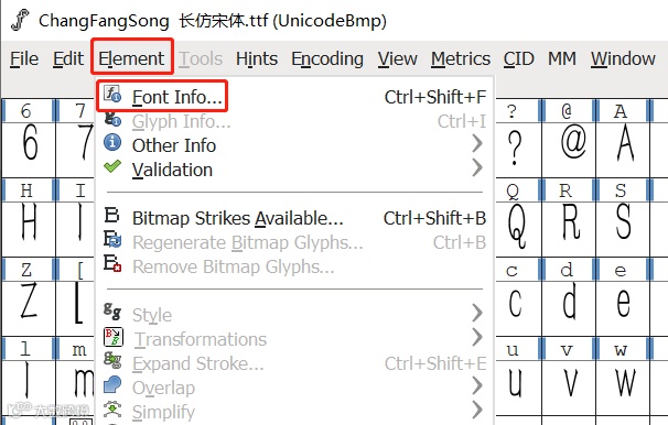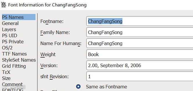 复制PS Names下的“ChangFangSong”字样备用,如图6所示