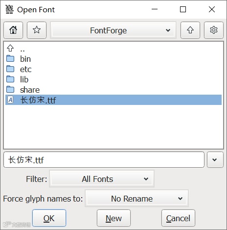 浏览到“长仿宋”字体(预先可以从C:\Windows\Fonts下拷贝出来),单击“OK”,如图3所示