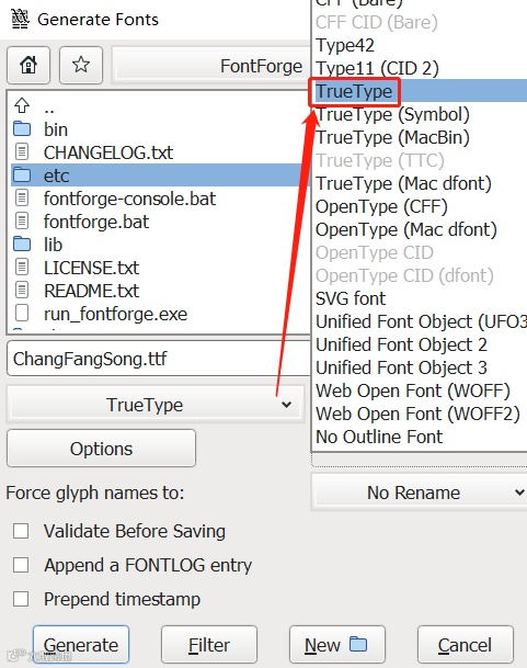 选择存放字体的位置,类型选“True Type”,然后单击底部“Generate”,就得到我们所需的字体,如图11所示