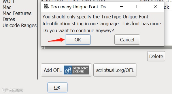 会出现如下字体警告,单击“OK”继续,如图4所示