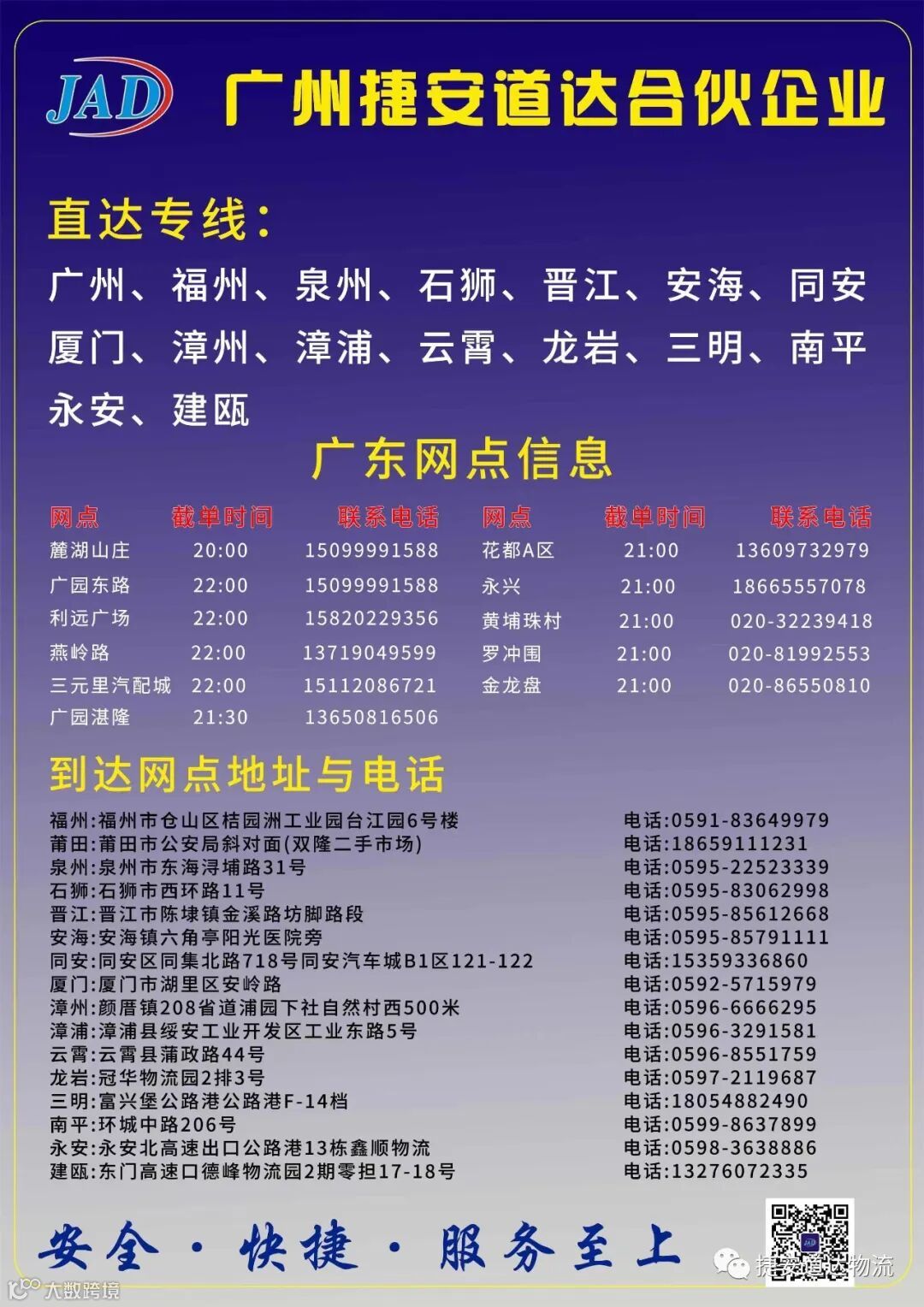 导读:亲爱的客户朋友:大家好!应客户要求并结合我公司发展需要,现推出福州早班专线。广州21:00前交货,明早9:0