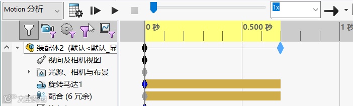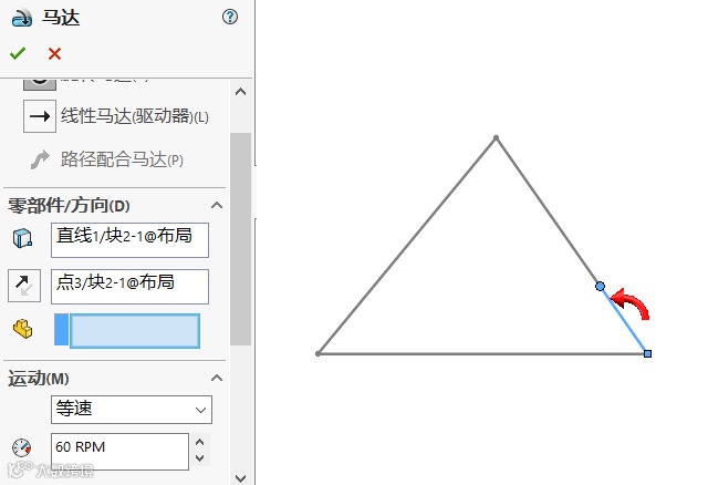 6. 在运动算例中选择【motion】分析,添加一个60转/分钟的旋转马达,如图7所示。