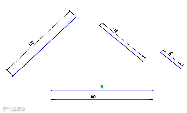 4. 拖动4跟草图块通过几何关系进行组装成我们所需的旋转摇摆机构简图,如图5所示。