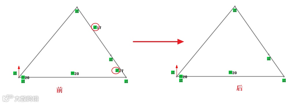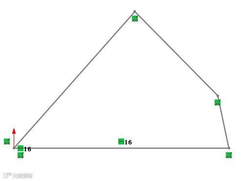 5. 对旋转边和其接边添加一个“共线”几何关系后再删除“共线”几何关系,目的为了获取一个极限点,如图6所示。