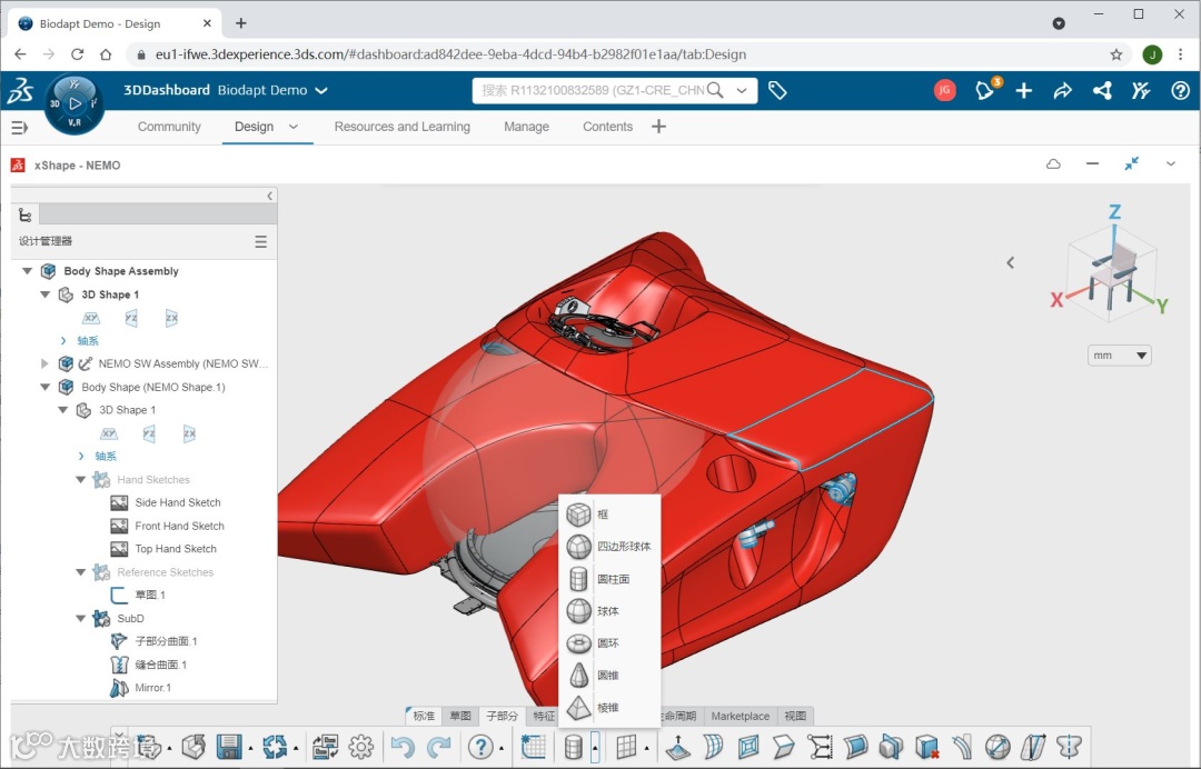 3D Sculptor 是一种基于浏览器的 3D 细分建模解决方案,它使工业设计师、工程师和艺术家能够比传统的参数化工具更快、更轻松地创建符合人体工程学的造型或采用有机形状的模型。3D Sculptor 依托于基于云的 3DEXPERIENCE 平台,以直观的细分建模和无缝的设计数据交换能力补充了 SOLIDWORKS 3D CAD 的参数化工作流。