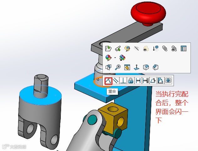 1、 在2023 SP0.0版本中,使用快捷键执行标准配合时,当选择要配合对象后,执行配合命令,界面弹出一个窗口闪一下并迅速关闭,如图1-1所示。在最新的2023 SP1.0版本中,已经修复了该问题。