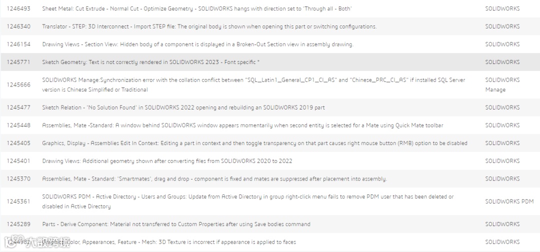 达索SOLIDWORKS 2023 SP1.0版本在2月中旬发布了,针对上一个版本修复了一些问题。以下是部分问题的截图显示: