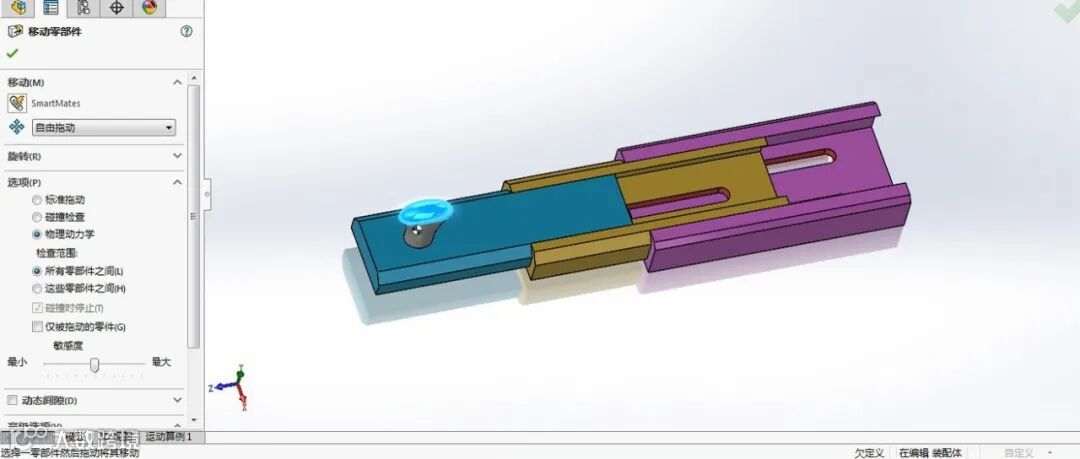 工程师设计产品时经常遇到运动机构,运动机构运动过程中是否碰撞呢?可以使用SOLIDWORKS“碰撞检查”功能来判断。