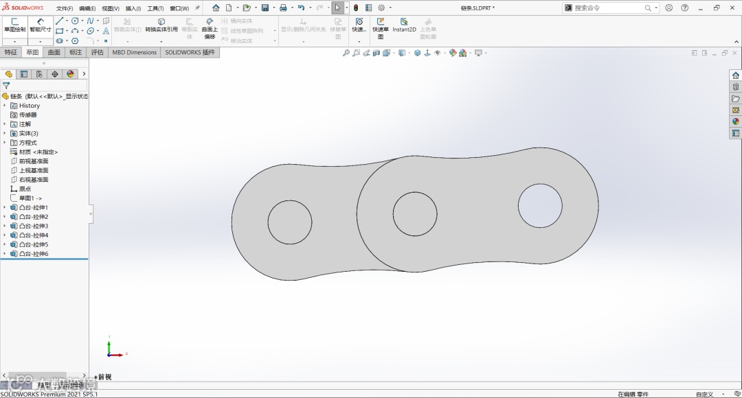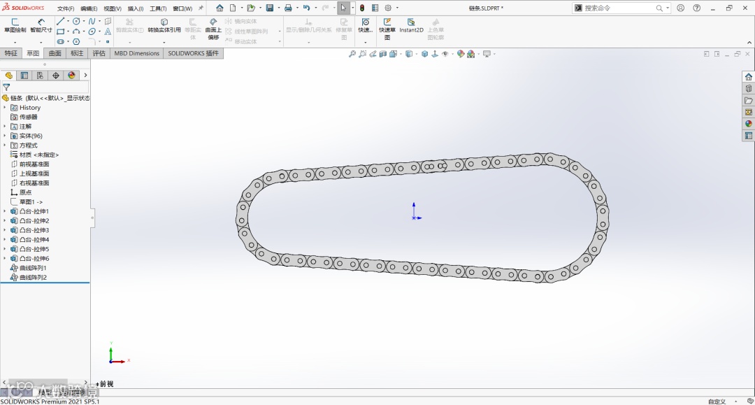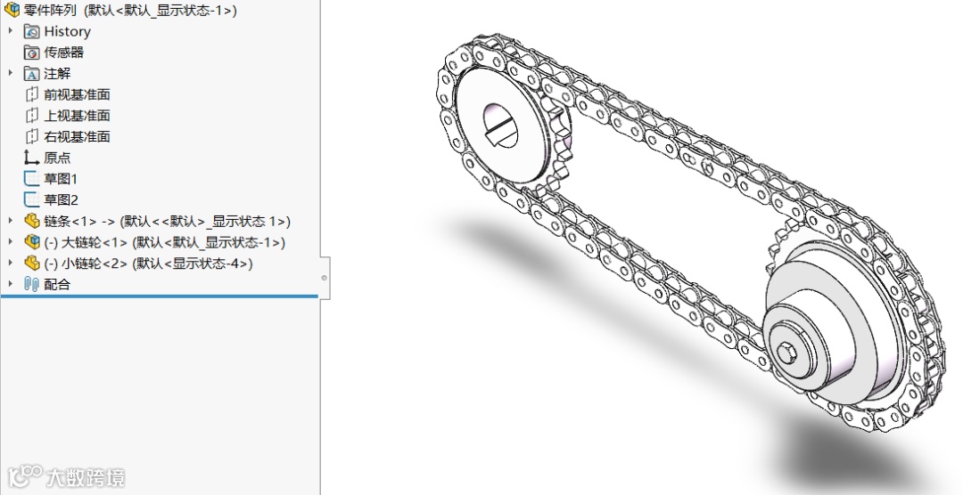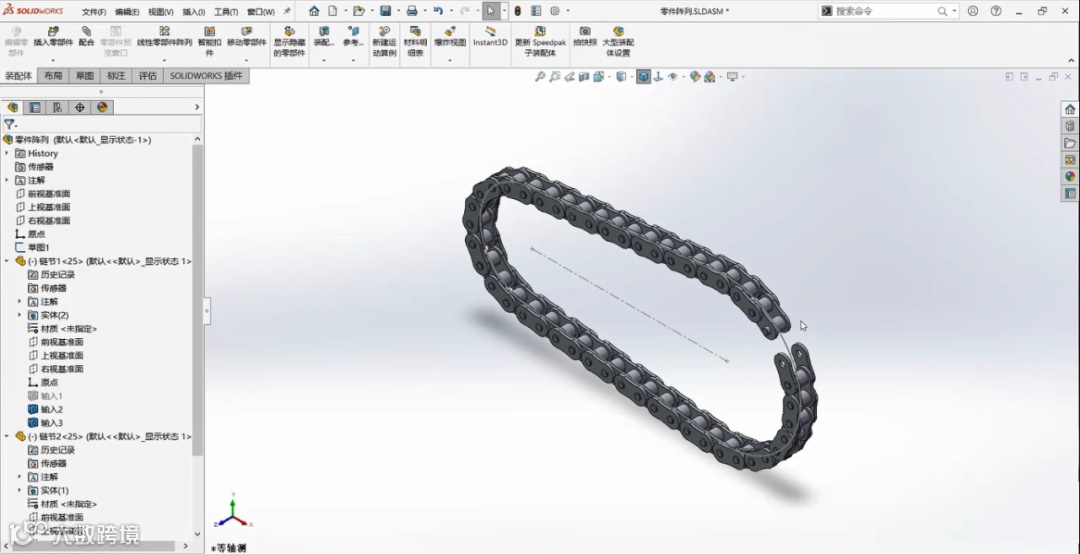 第二部分:不使用参数化的方法,在装配体中直接对链条进行处理。由于往期视频已有相关内容,这里只做视频演示。