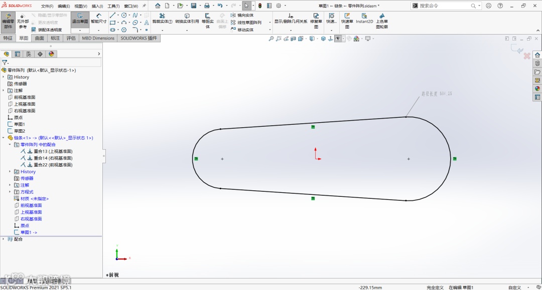 第一步:依然采用自顶向下的方法,在装配体中绘制链条的阵列路径;