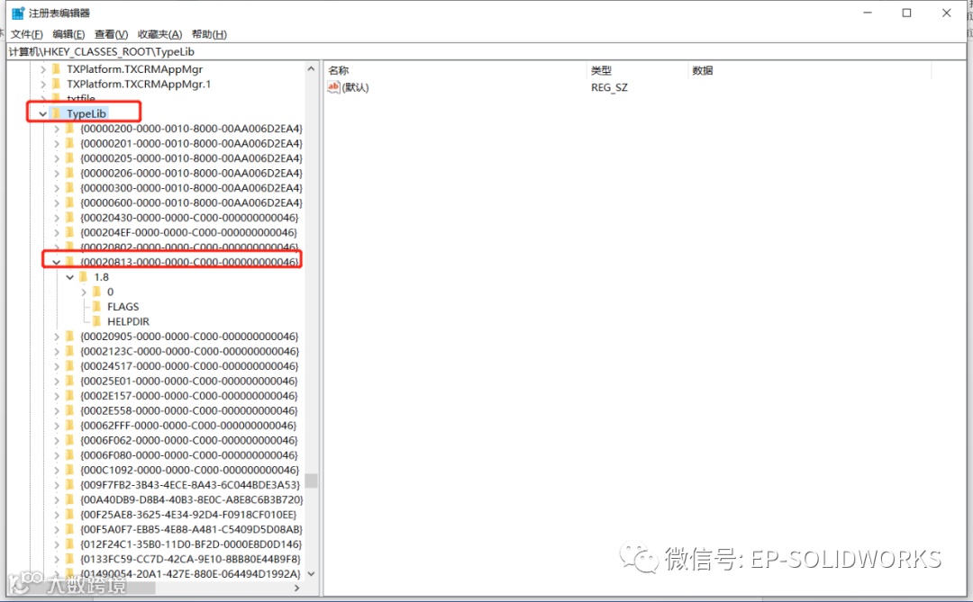 2、 在注册列表中找到此路径:计算机\HKEY_CLASSES_ROOT\TypeLib\{00020813-0000-0000-C000-000000000046}。如图:
