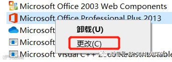 选择:卸载程序,找到ofice软件,点击右键进行更改