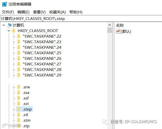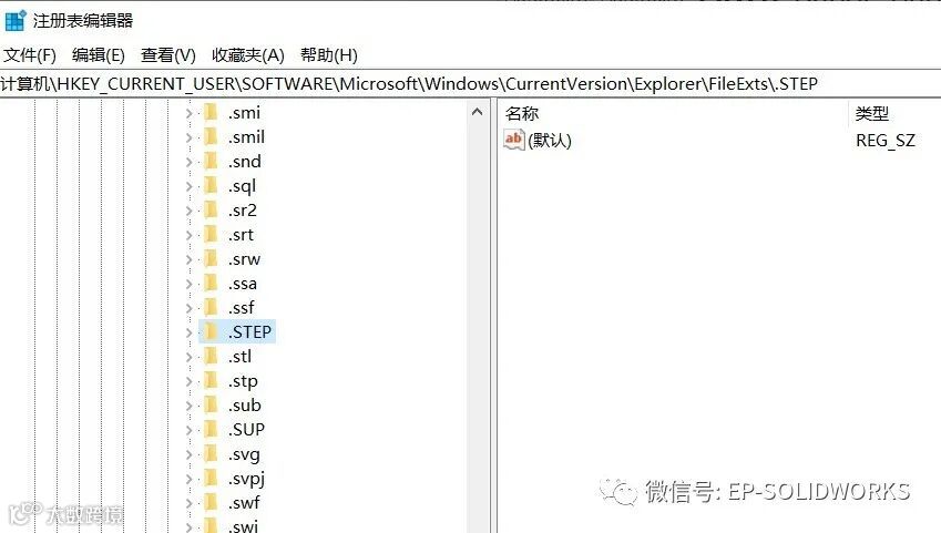 步骤1:删除路径HKEY_CLASSES_ROOT下的.step文件夹
