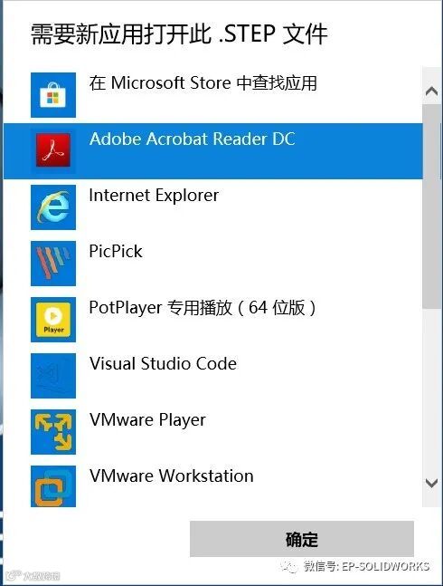 是的,以上方法是可以去除默认显示方式,但以后.STEP文件再也不能通过双击选择SOLIDWORKS打开。当我们双击.STEP格式文件的打开方式是看不见SOLIDWORKS程序的