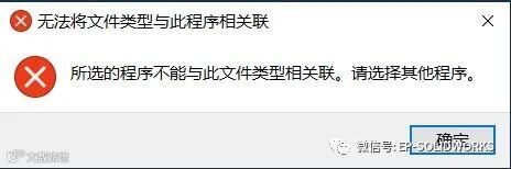 然后通过浏览到SOLIDWORKS安装路径下的程序打开时,报错,说明SOLIDWORKS不再识别.STEP文件