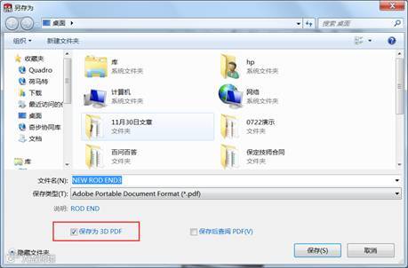 通过这类PDF的存储可以将零件/装配体的信息表达到平面里,但是,有些传递通过平面的方式可能不够清晰,需要真实的三维模型来进行沟通。这个时候,我们可以在存储界面下,选择存储成3D PDF。