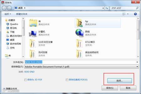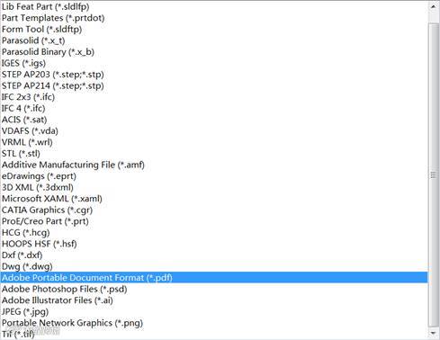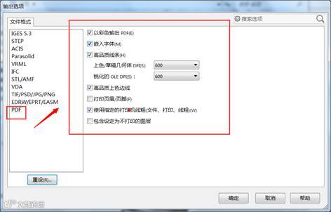 SOLIDWORKS提供了丰富的存储格式,其中我们可以选择到保存成PDF格式。如果需要我们对转出的PDF质量进行设定,我们可以通过选项进行设置。