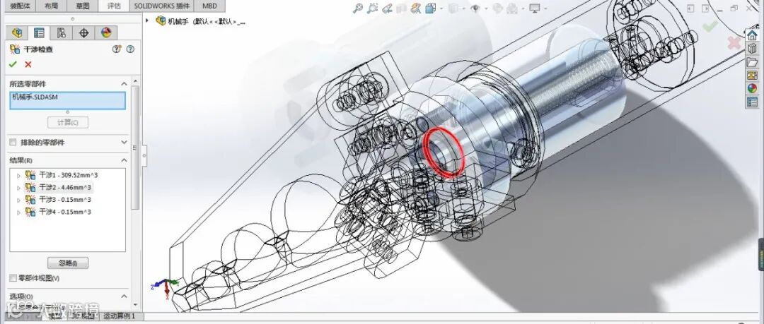 选择忽略要排除的干涉,如压入配合以及螺纹扣件干涉等。