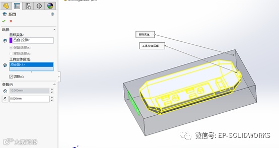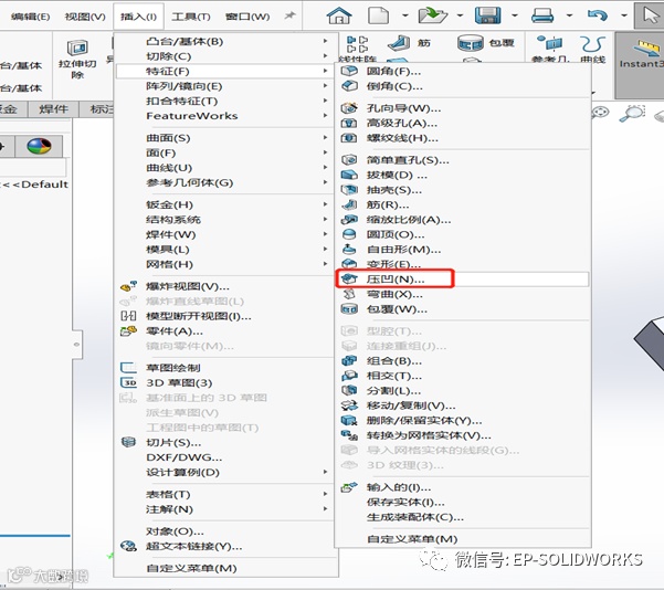 SOLIDWORKS压凹命令,一个不显示在特征命令栏的命令
