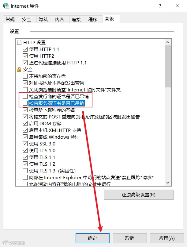 “检查服务器证书是否已吊销”