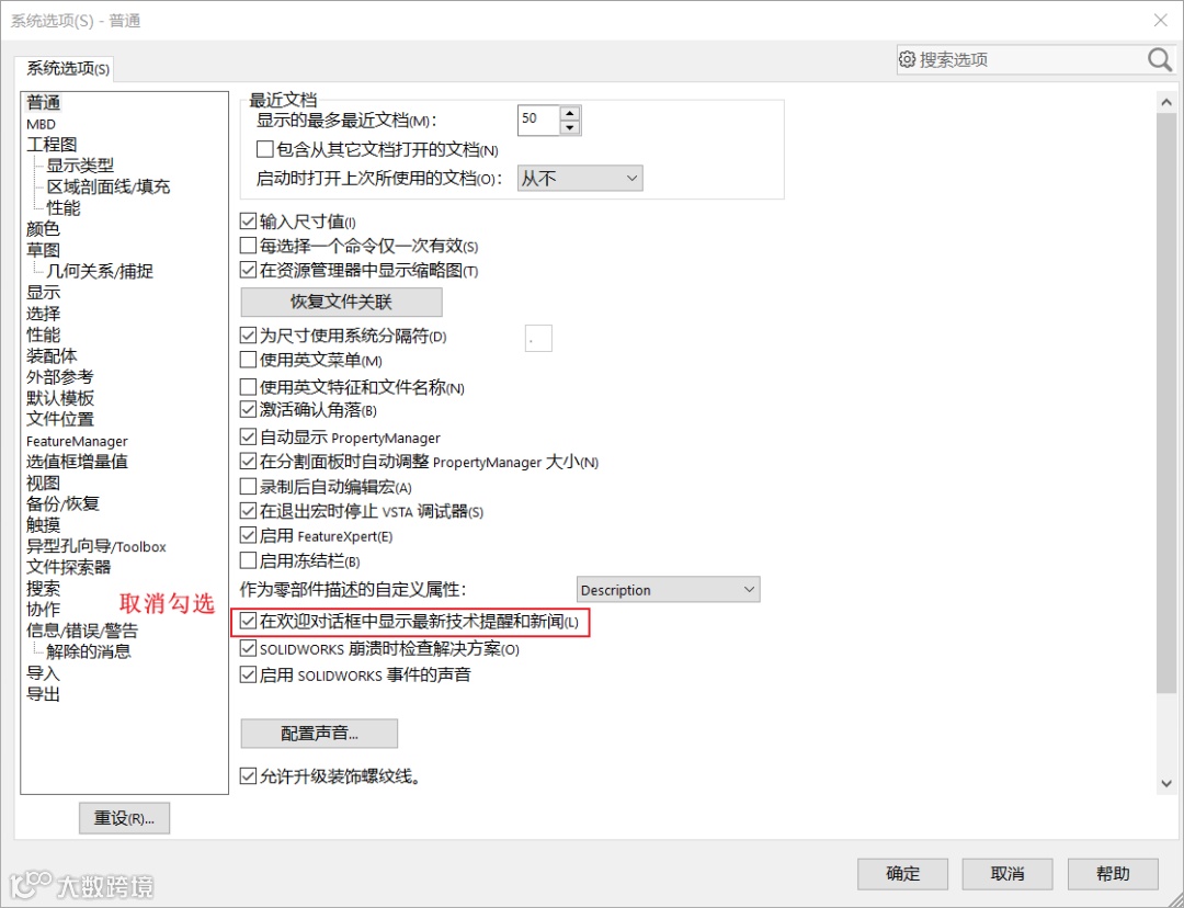 1. 取消勾选“在欢迎对话框中显示最新技术提醒和新闻”