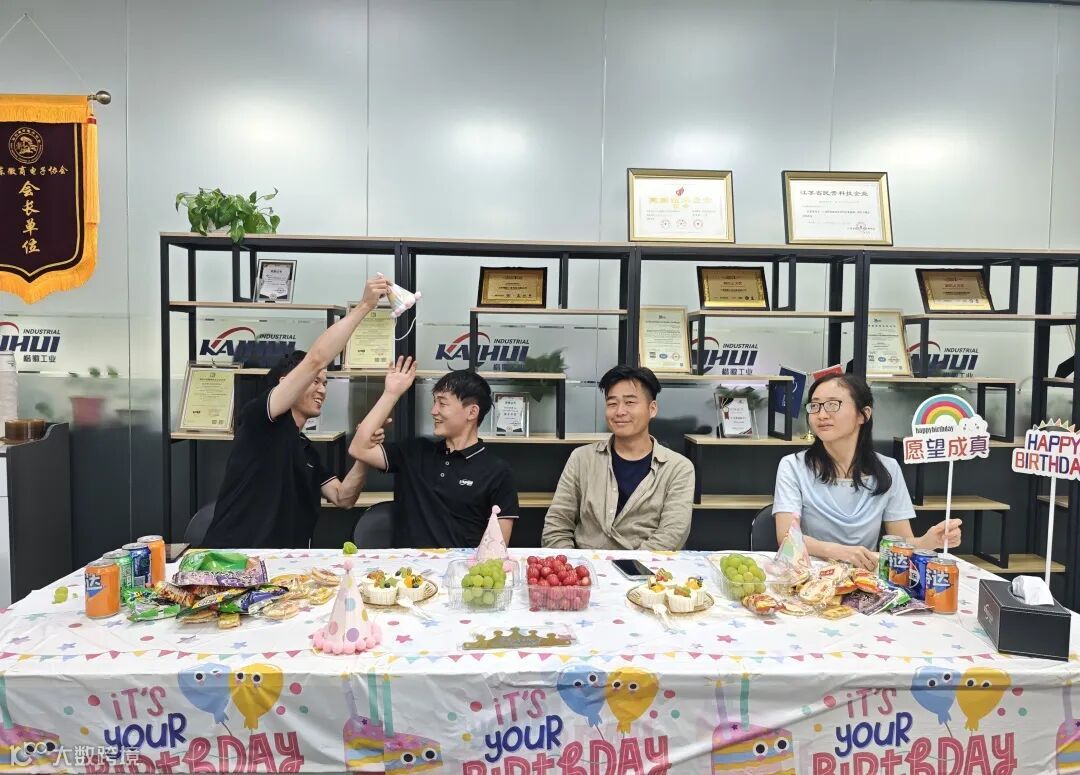 从色彩缤纷的生日帽,到琳琅满目的零食、水果,再到精致的定制蛋糕,每一处细节都饱含着楷徽对员工的关爱。这场生日会,不仅是一次欢乐的聚会,更是楷徽大家庭温暖与凝聚力的体现。愿所有寿星在新的一岁里,与楷徽携手同行,奔赴更美好的未来!下次生日会,我们不见不散!