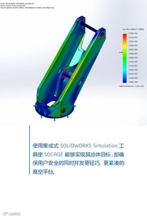 除利用SOLIDWORKS 设计工具(如在平台被展开和移动时利用设计配置来捕捉每个位置)和自动创建最 优工具外,SOCAGE 还依赖集成式 SOLIDWORKS Simulation 软件来实现其总体目标,即确保用户安全的同时开发更轻巧、更紧凑的高空平台。